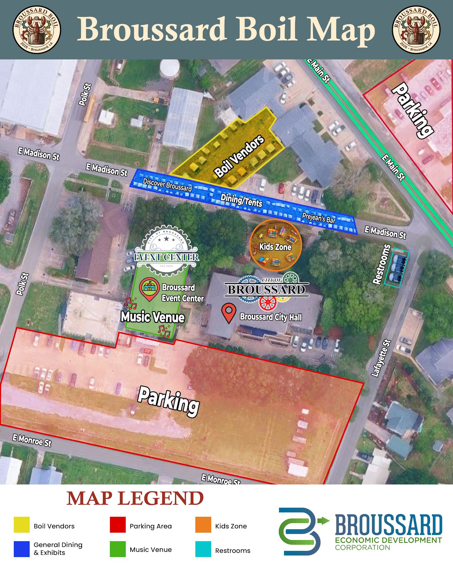5:00 PM – 8:00 PM: Boiled crawfish from local vendors available for purchase